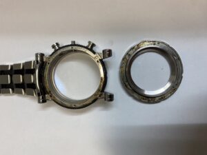 10気圧(100m)防水の時計ですが、長年メンテナンスをせずに使用し続けるとケースが腐食、防水性が無くなってしまいます。